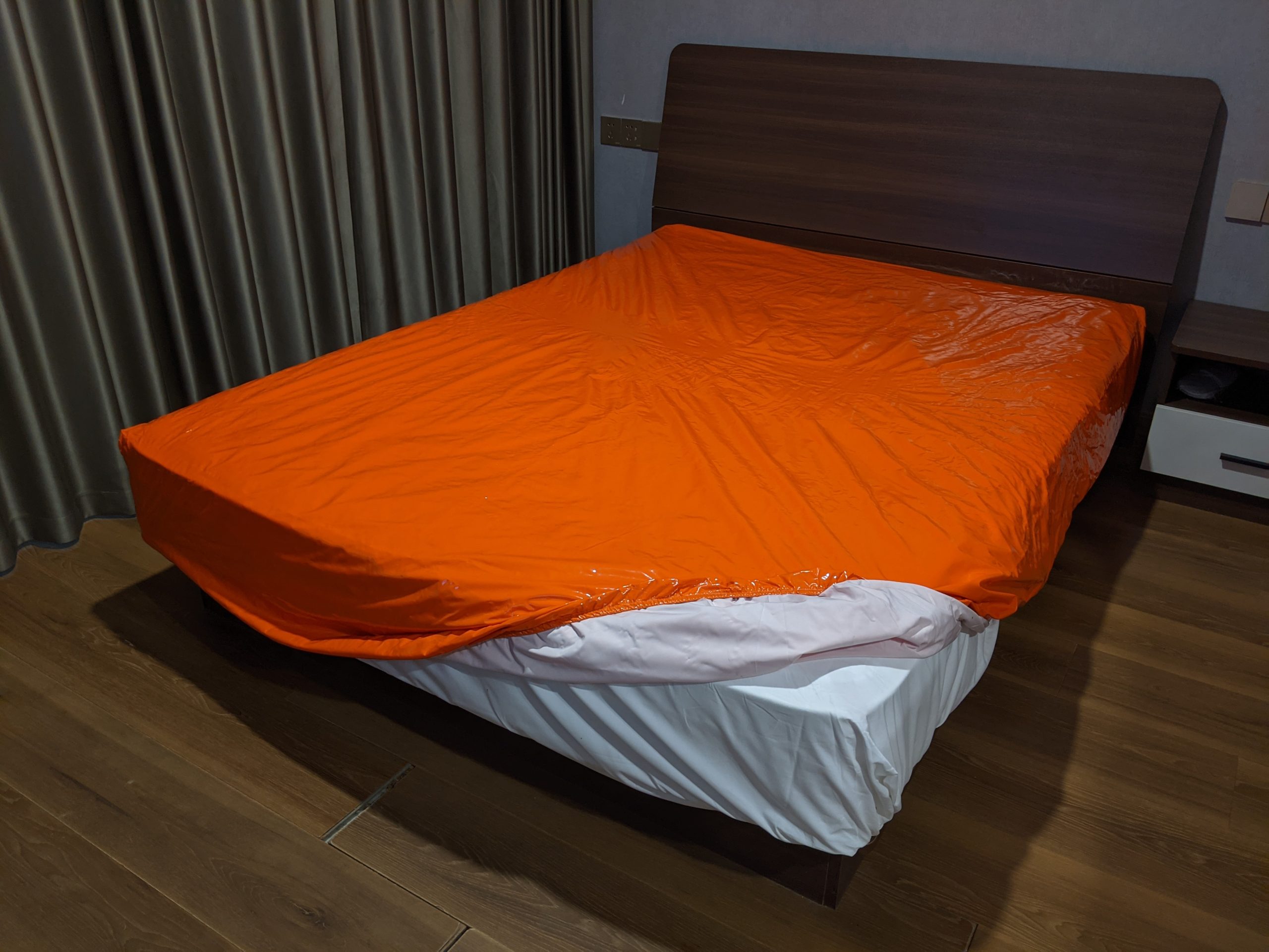 Ultra-Glossy Black PU Leather Fitted Sheet – 100% Waterproof, Oil-Proof & Fetish Friendly (Queen/King)